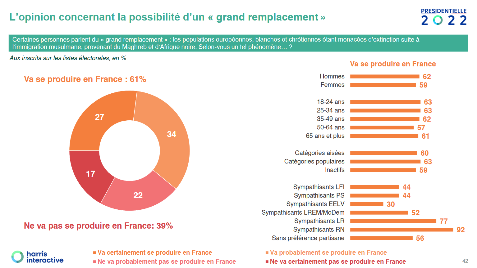 Autre illustration saisissante : le sondage sur la réalité du Grand Remplacement et sur la perception de ce phénomène.